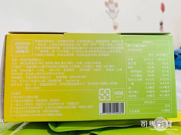 其實他的口感喝起來跟蔬果汁的味道很類似,有點甜甜的,吞下去後會有一點回甘,我想那可能就是枸杞的味道吧~